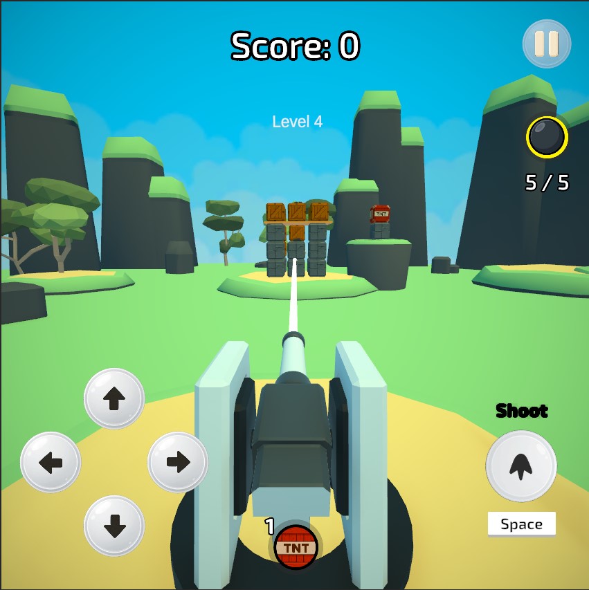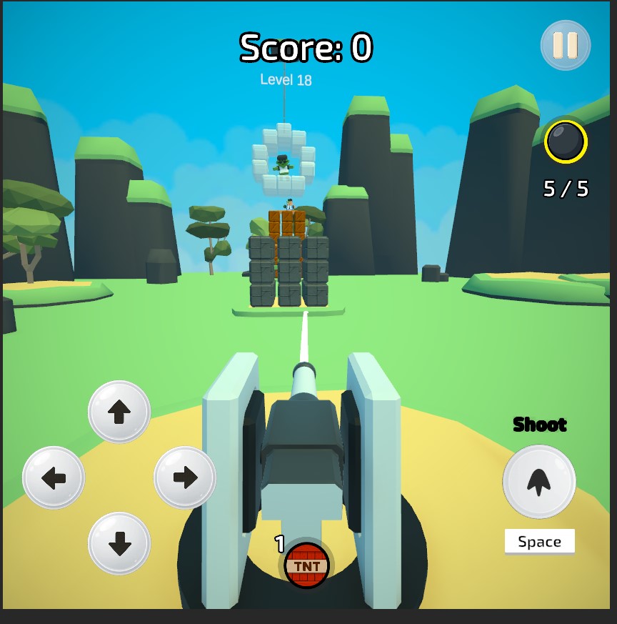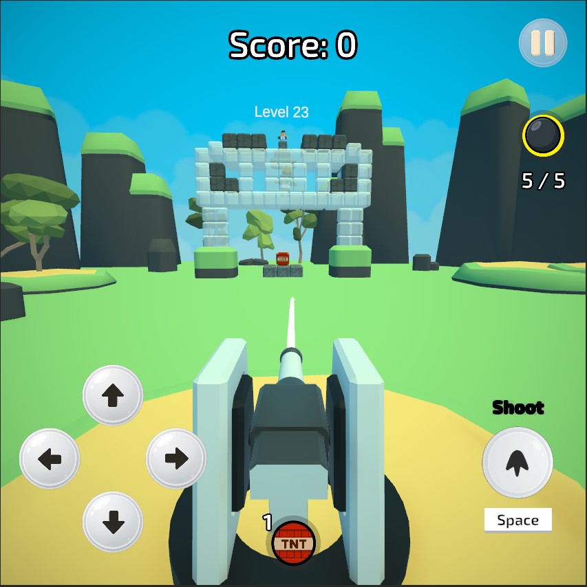 This is a level-based artillery puzzle game set in vibrant greenlands. Players control a fixed cannon that can be rotated in all directions to target and destroy fortress-like structures made of wood, stone, and TNT blocks. Each level introduces new formations and challenges, requiring precision aiming and strategic use of cannon fire. Unlike endless wave shooters, this game focuses on structured, progressive levels with a clean and immersive greenland theme.